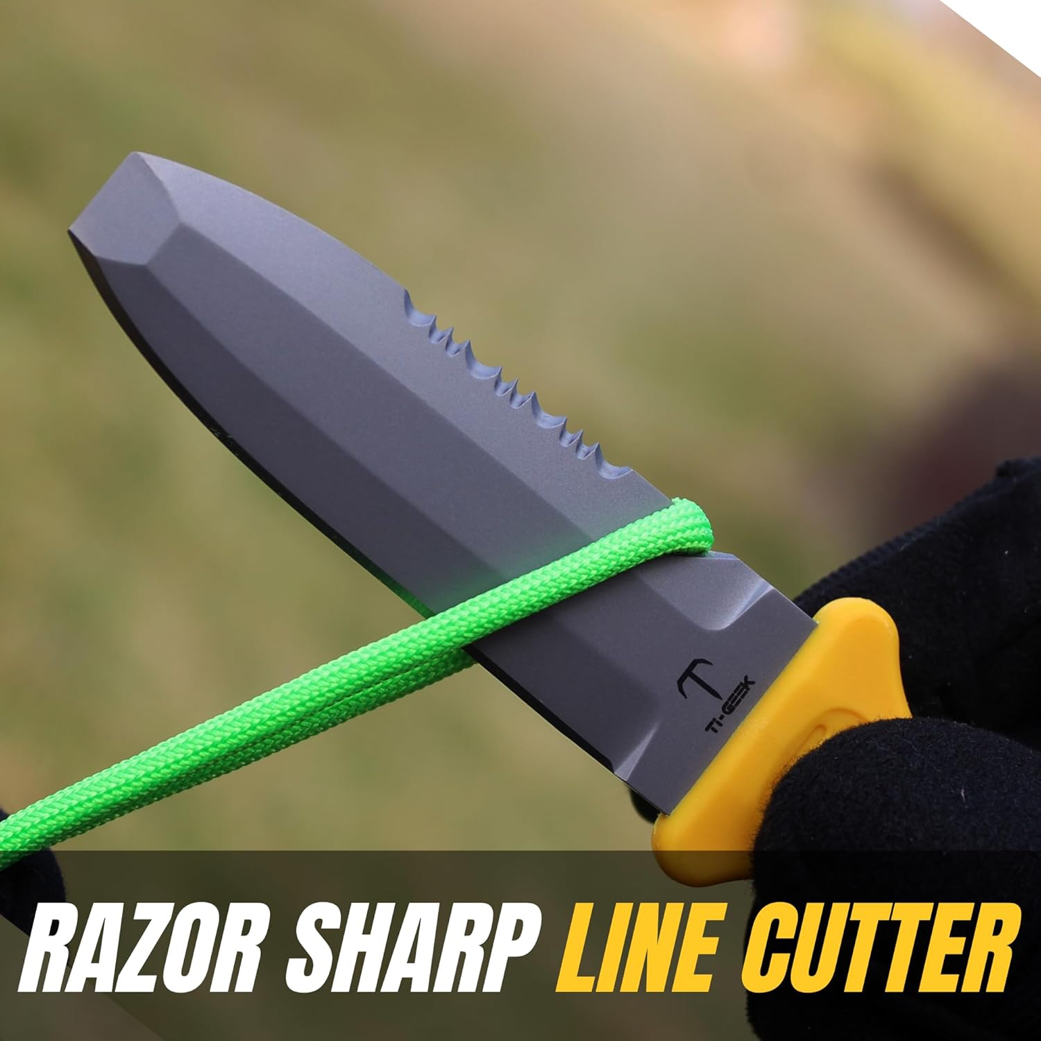 [Bright Colors & Gripped Handle]: Bright Neon Green & Neon Yellow allow you to see the knife even in Murky waters. Easy visibility is essential in a bind. We added grooves to improve the grip on both sides for right and left handed people